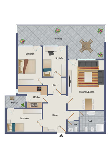 Schöne 3 Zimmer-Wohnung mit Terrasse